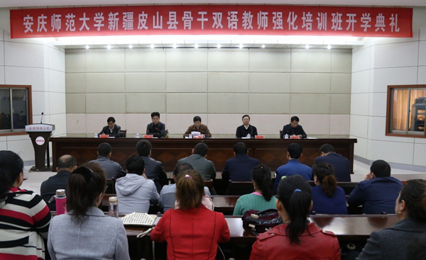 张群指出,教育援疆是我省援疆的重要举措,教育援疆已成为安徽援疆的亮点和特色,有力地推动了我省对口援疆县皮山县教育事业的快速发展。yl23455永利官网在省委省政府和省教育厅的领导和支持下,积极参与并承担教育援疆任务,2012年永利官网承担了为期两年的新疆未就业大学生培训任务,为皮山县培训双语教师98人,取得良好成效。此次教育厅把皮山县40名骨干双语教师培训任务委托给永利官网承担,是对永利官网教育援疆 “双语教育培训”工作的肯定。