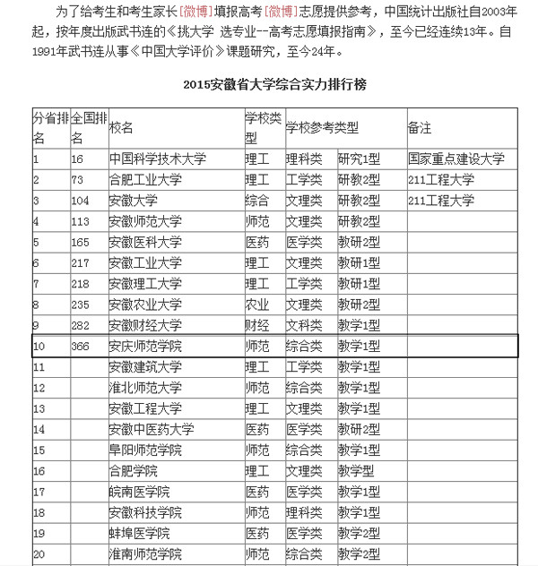 日前,由中国管理科学研究院武书连主持的《2015中国大学评价》正式发布,永利官网综合实力排名位居安徽省省属院校第八。