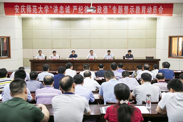 7月6日下午,学校召开“讲忠诚、严纪律、立政德”专题警示教育动员暨党课报告会,学校党政领导许继荣、闵永新、刘友忠、胡腊香,党委常委戴卫义、苏本跃出席会议,全体党委委员、纪委委员,全校副处级以上干部参加会议。校长闵永新主持会议。
