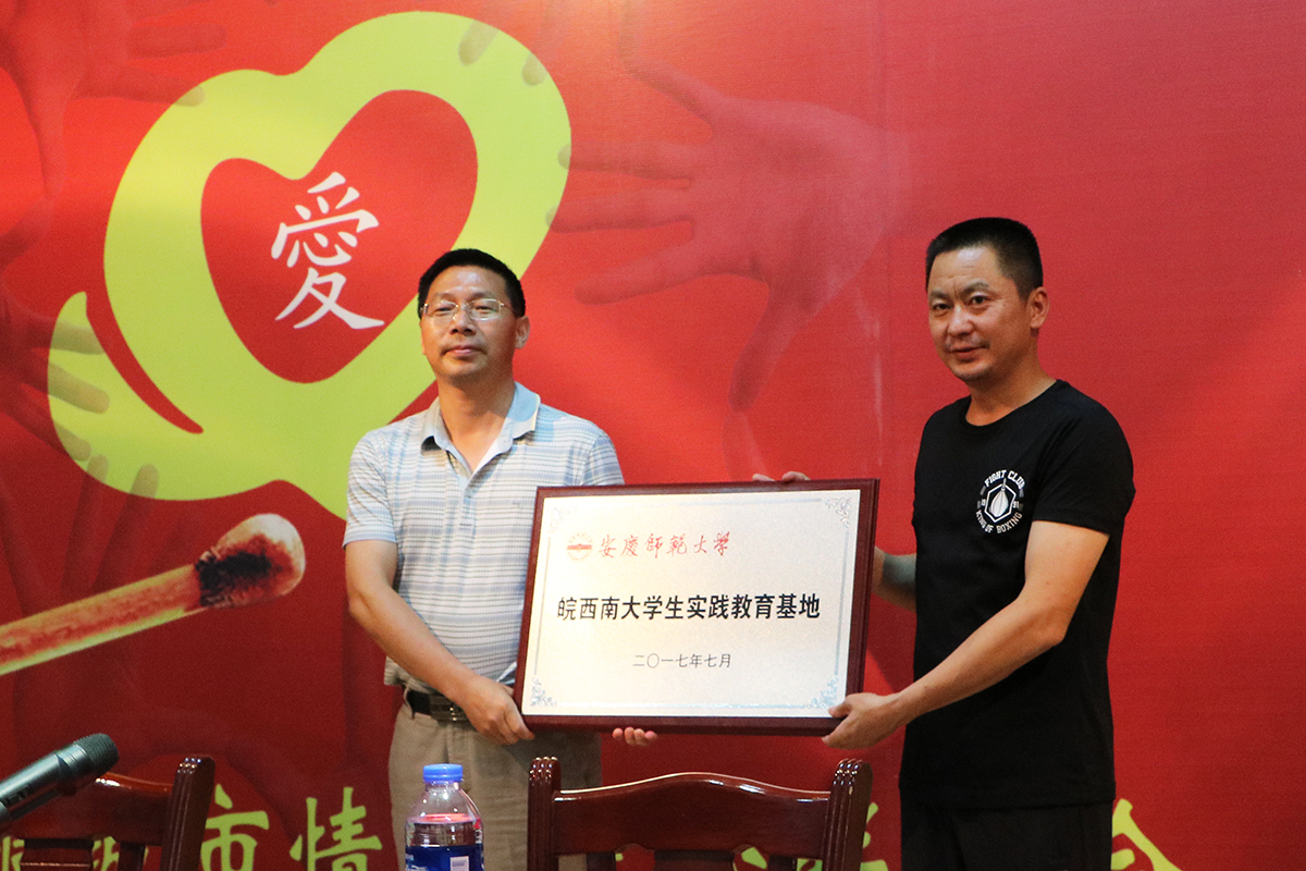 汪时珍指出,皖西南大学生实践教育基地是学校将思想政治工作与实践育人结合的又一创新,是“安徽省高等教育振兴计划高校思想政治教育综合改革”的建设项目。情系爱心联合会长期致力于“扶助弱势群体、传播爱心文化”的公益服务,是美好桐城建设的一张文化名片,暖心名片。在情系爱心联合会建立大学生实践教育基地,既可以通过大学生们的社会实践为情系爱心联合会的公益服务提供力所能及的智力支持,也有利于同学们在实践中进一步了解社会,了解公益,增强社会责任感,提升实践能力;同时,学校还可以结合桐城社会组织需求,进一步发挥人才优势,推进社会工作等应用类专业改革和发展,促进校地合作,争取优势互补,相得益彰。他希望参加暑期“三下乡”活动的同学要充分利用实践,感悟桐城厚重的历史文化,弘扬情系爱心联合会博大的奉献友爱精神,真正成长为“有理想、有追求,有担当、有作为,有品质、有修养”的大学生。