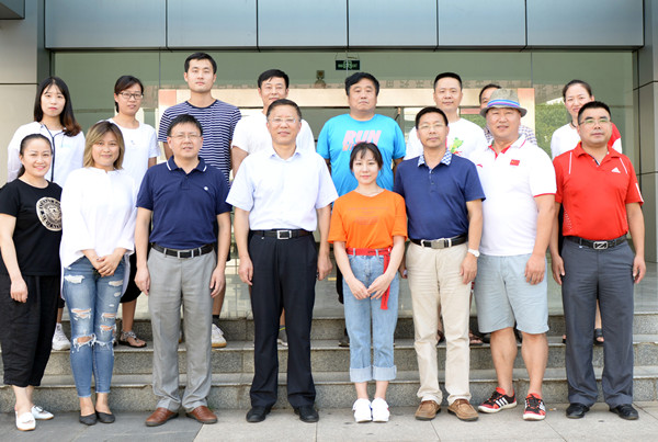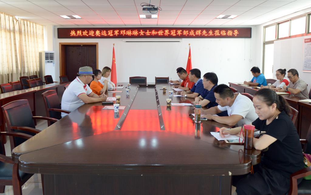 7月26日下午,体操奥运冠军邓琳琳、技巧世界冠军邹成辉在安徽省啦啦操协会秘书长胡彩红等陪同下来永利官网考察交流。校长闵永新会见了邓琳琳一行;副校长汪时珍与邓琳琳一行进行座谈交流,体育学院党政主要负责同志、部分专业教师参加座谈。