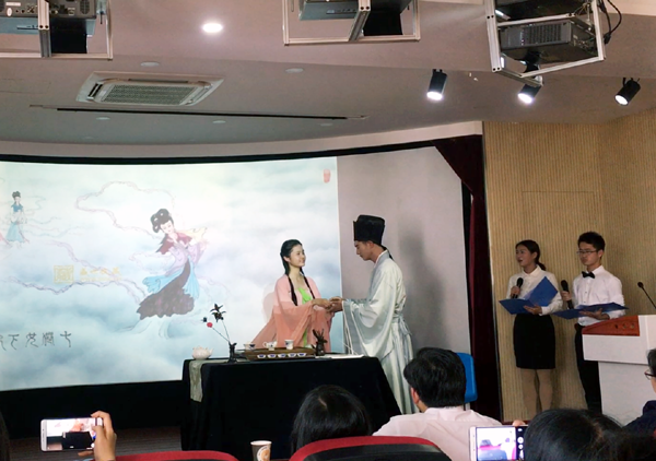 4月15日,永利官网第三届大学生茶文化创新大赛暨“徽府茶行”杯2017中国(安徽)大学生茶文化创新大赛校园选拔赛在龙山校区举行。本次比赛由教务处、国家大学生文化素质教育基地组织,来自文学院、资源环境学院和生命科学学院等三个学院的12支队伍参加了比赛。副校长张群赴比赛现场指导工作。