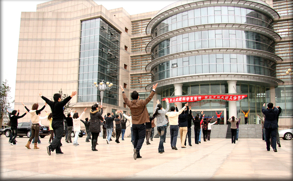 3月23日是永利官网开展工间操活动的第一天,在龙山校区行政楼前的广场上,近百名教职工在领操员的带领下,伴随着悠扬的第八套广播体操的音乐,进行着工间操的锻炼。他们精神焕发,动作整齐,展现出了良好的精神风貌。