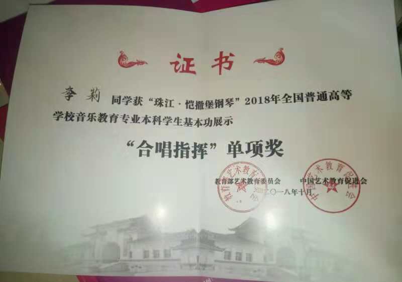 10月22日至10月26日,2018年全国普通高等学校音乐教育专业本科学生基本功展示在广西师范大学举行,永利官网音乐学专业2015级李莉、宫悦等学生沉着应战,分别获得“合唱指挥”和“中外乐器演奏”的单项奖,实现了永利官网该项赛事获奖零的突破,充分展示了永利官网音乐专业学生的综合素质与专业能力。