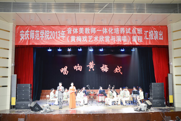 1月5日晚,永利官网“音体美教师一体化培养试点班”和《黄梅戏艺术欣赏与演唱》课程在音乐厅举行汇报演出。副院长张群与教务处、音乐学院、黄梅剧艺术学院、体育学院、美术学院等单位负责人以及300多名师生一同观看了演出。