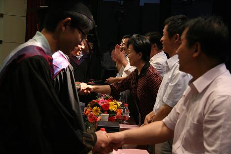 计算机与信息学院党总支书记方旭东同志发表了热情洋溢的讲话。他就我国当前就业前景和就业市场作了分析,为同学们描绘了充满机遇和挑战的当代社会现状,他鼓励同学们响应国家号召,到西部、农村及中小型城市寻求发展机会,并向同学们表达了美好的祝愿和殷切期望。教师代表韩承双教授在发言中希望毕业生们在以后的人生道路上,学会“享受学习、享受工作、享受生活、享受友谊”,从而可以取得更加优异的成绩。仪式上,优秀毕业生代表曾宇航、2007届毕业生鲁斌、非毕业生代表何学荣同学也相继上台发言,表达对未来人生的憧憬和对成长成功的渴望,既有对离别的不舍,也有对母校深深的眷恋和对师长的无限感激。