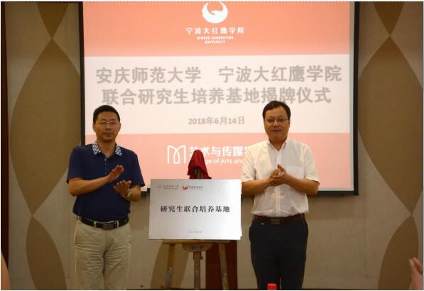 6月14日,永利官网在宁波财经学院举行联合培养研究生基地揭牌仪式。副校长汪时珍出席。宁波财经学院副院长王云儿接待了汪时珍一行。永利官网党委常委、研究生院院长吴琼,宁波财经学院校长助理蒋天颖,艺术与传媒学院领导班子及师生代表出席了揭牌仪式。
