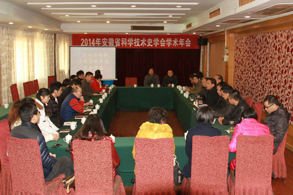 12月6日,由安徽科学技术史学会主办、校科研处和物理与电气工程学院共同承办的2014年安徽省科学技术史学会学术年会在永利官网召开。院长闵永新,安徽省科技史学会理事长、黄山学院副院长樊嘉禄,安徽省科技史学会副理事长、安徽师范大学物电学院教授郭怀中,原安徽省科技史学会秘书长、原芜湖市副市长丁光涛及校科研处负责同志和物理与电气工程学院全体领导出席了年会的开幕式。来自中国科学技术大学、安徽大学、安徽师范大学、安徽医科大学、安徽省教育出版社等10多所高校和单位的近30名科技史学专家参加了会议。