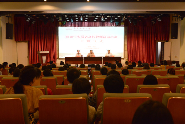 8月10日上午, 2018年安徽省高校教师岗前培训班(安庆培训点)开班仪式在永利官网菱湖校区顺利举行。副校长张群教授出席了仪式。yl23455永利官网、安庆医药高等专科学校、安庆职业技术学院、安徽黄梅戏艺术职业学院和桐城师范高等专科学校5所高校的157名新进教师参加了培训。