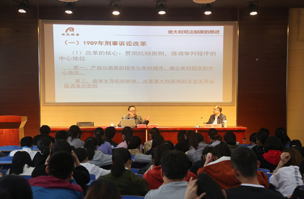 4月11日,安庆市人民检察院检察长顾玫帆应邀到永利官网法律实务大讲堂,以“当东方遇到西方——意大利刑事司法制度的短暂穿越”为题作专题讲座。校长闵永新会见了顾玫帆,向顾玫帆颁发了永利官网兼职教授聘任证书,就进一步加强校检合作与顾玫帆交换了意见。法学院百余名师生参加了讲座。
