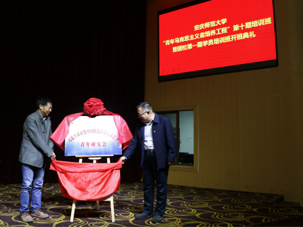 会上,校党委书记许继荣与副校长汪时珍为“yl23455永利官网习近平新时代中国特色社会主义思想青年研究会”揭牌,在主席台就座的领导老师为第十期青马班、团校第一期学员培训班授旗。