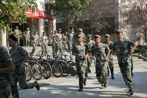 此次演练是2017级新生军训的重要科目之一,以“地震”为模拟场景进行紧急疏散。下午3点整,随着应急演练指挥长的一声令下,演练正式开始。“地震警报”信号发出的一瞬间,还在宿舍楼内的学生迅速抱头,蜷缩身体,躲在各自的桌下。随后,紧急疏散信号响起,学生们在教官的组织指导下快速撤离,到达指定地点集合。此时距演练开始不到7分钟。