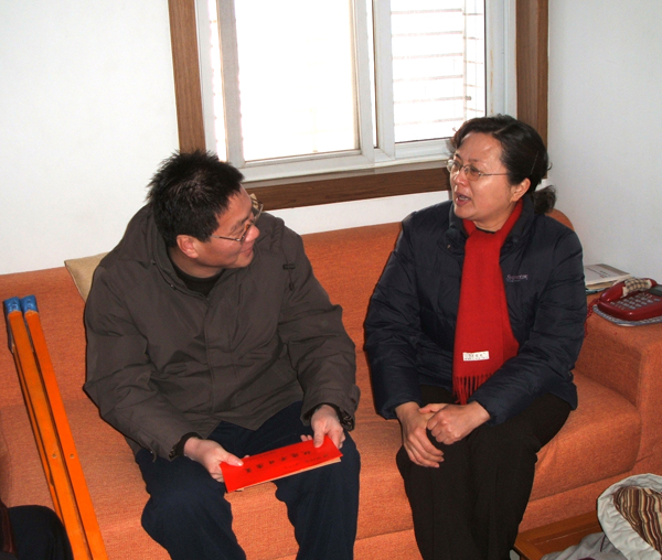 1月11日,党委书记赵晓和、纪委书记、工会主席殷红等领导来到教务分会职工朱广海和后勤二分会职工王洛荣家,关切地询问起他们的生活状况,并提前祝贺他们新春快乐。1月12、13日,纪委书记、工会主席殷红上门慰问了人文与社会学院教授董根明、教育学院分会职工蔡玉梅、体育系分会职工姚依民、后勤二分会职工黄贵源遗孀及部分离退休老同志等。
