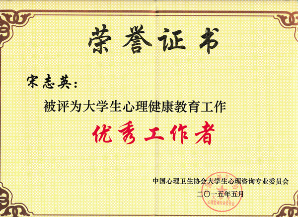 5月30日,在北京航空航天大学举办的第12届全国大学生心理健康教育与咨询学术交流会上,永利官网心理健康教育中心宋志英教授荣获“大学生心理健康教育优秀工作者”称号。