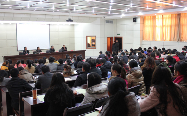 11月29日,安徽省援疆指挥部副指挥长、和田地委组织部副部长(安徽省委组织部公务员处调研员)张杰华,安徽省合作交流办副主任,安徽省援疆指挥部成员、和田维吾尔医专党委副书记、安徽省教育厅科研处调研员李方泽、皮山县组织部部长王玉满、皮山县人才办主任唐海泉、皮山县人社局局长罗方等一行11人来永利官网进行考察和招聘紧缺急需人才。副院长闵永新热情接待了招聘团一行,并主持了人才招聘会。永利官网招生就业处、继续教育学院和文学院负责同志,各院系分管学生工作的负责同志,大四毕业生150余人参加了招聘会。
