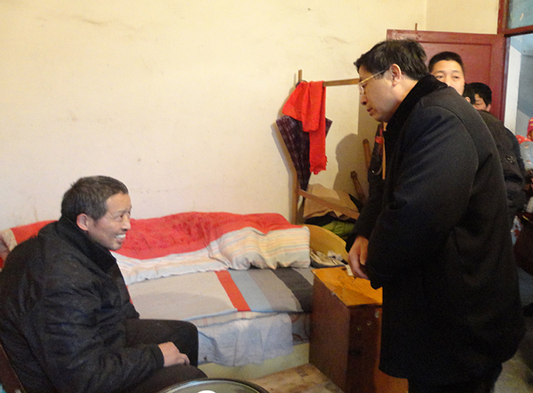2012年1月13日,校党委书记何小祥在党委委员、办公室主任刘友忠,办公室副主任、曾挂职担任宿松县北浴乡罗汉山村党委书记的李新建等同志的陪同下冒雨前往永利官网结对帮扶点宿松县北浴乡慰问困难群众。宿松县委书记张小青、县长王华等接待了何书记一行。宿松县委常委、组织部长李红兵等陪同慰问。